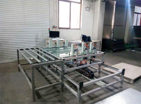 由于地板的長度和寬度規(guī)格比較多,而且檢測點距離長度方向的兩個邊緣尺寸不確定。所以,測量設備的各檢測點位置應能夠自由調(diào)整。